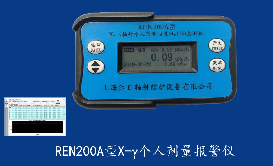 REN200A X、γ輻射個人劑量當量HP(10)監測儀REN200A型X、γ輻射個人劑量當量HP(10)監測儀(簡稱:個人劑量報警儀)內置高靈敏度蓋格計數管為探測器,主要用來監測各種放射性工作場所的X、γ以及硬β射線的輻射,具有響應快,測量范圍寬的特點。能顯示工作場所的劑量當量率和累積劑量,更換電池時,日期及累積數據能永久保存。可選配RenRiPersonal個人劑量管理軟件,該軟件可存儲多個人的歷史數據,能記錄日累積、月累積、年累積、輻照時長、計算平均劑量率、扣除或不扣除本底輻射,且以文字和圖譜的方式展現數據。廣泛應用于核電站、加速器、鋼鐵、化工、同位素應用、工業X、γ無損探傷、放射醫療、鈷源治療、γ輻照、放射性實驗室、核設施周圍環境監測等領域